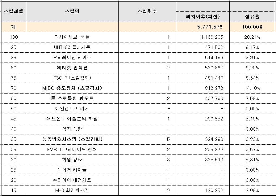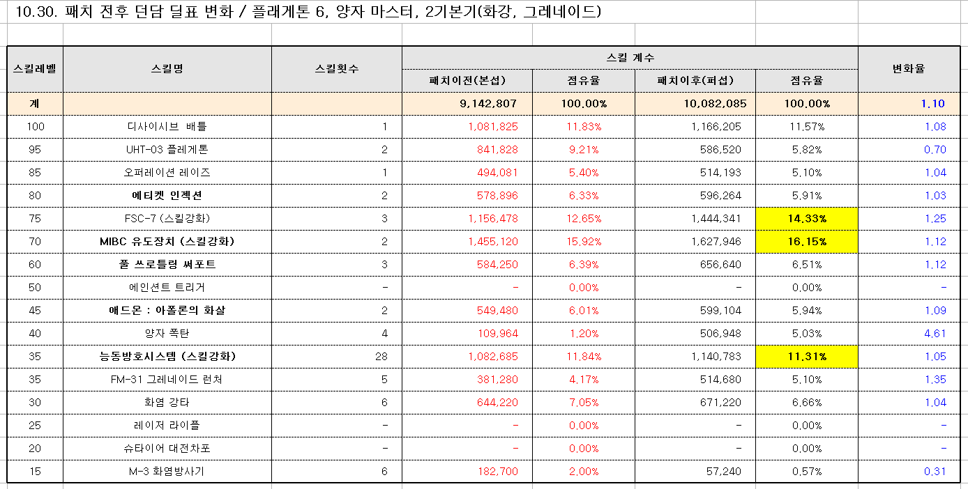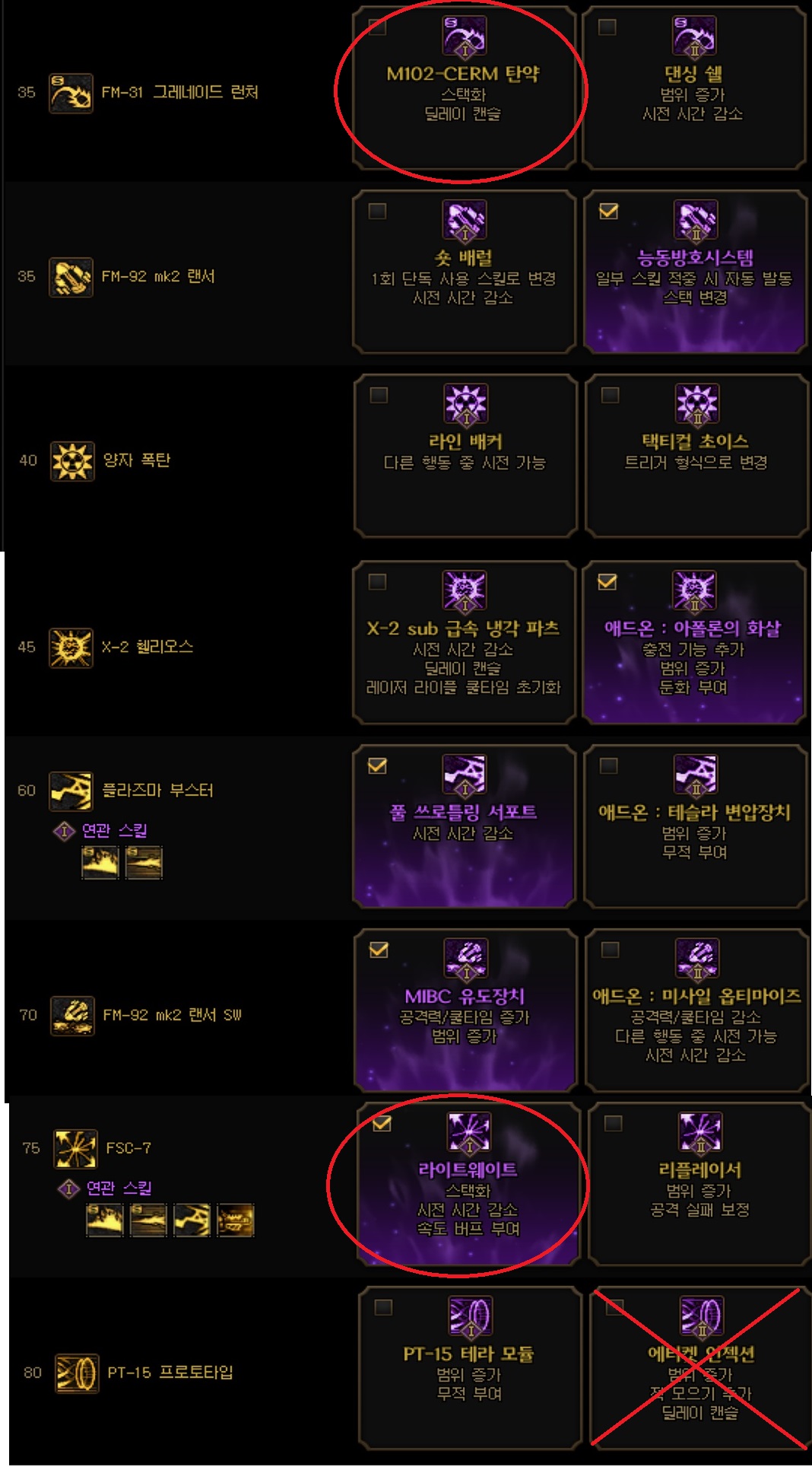 2. 패치 후 스킬트리 제시 : 무큐기 기반, 기본기 최소투자 (화강, 그레네이드, 화방)