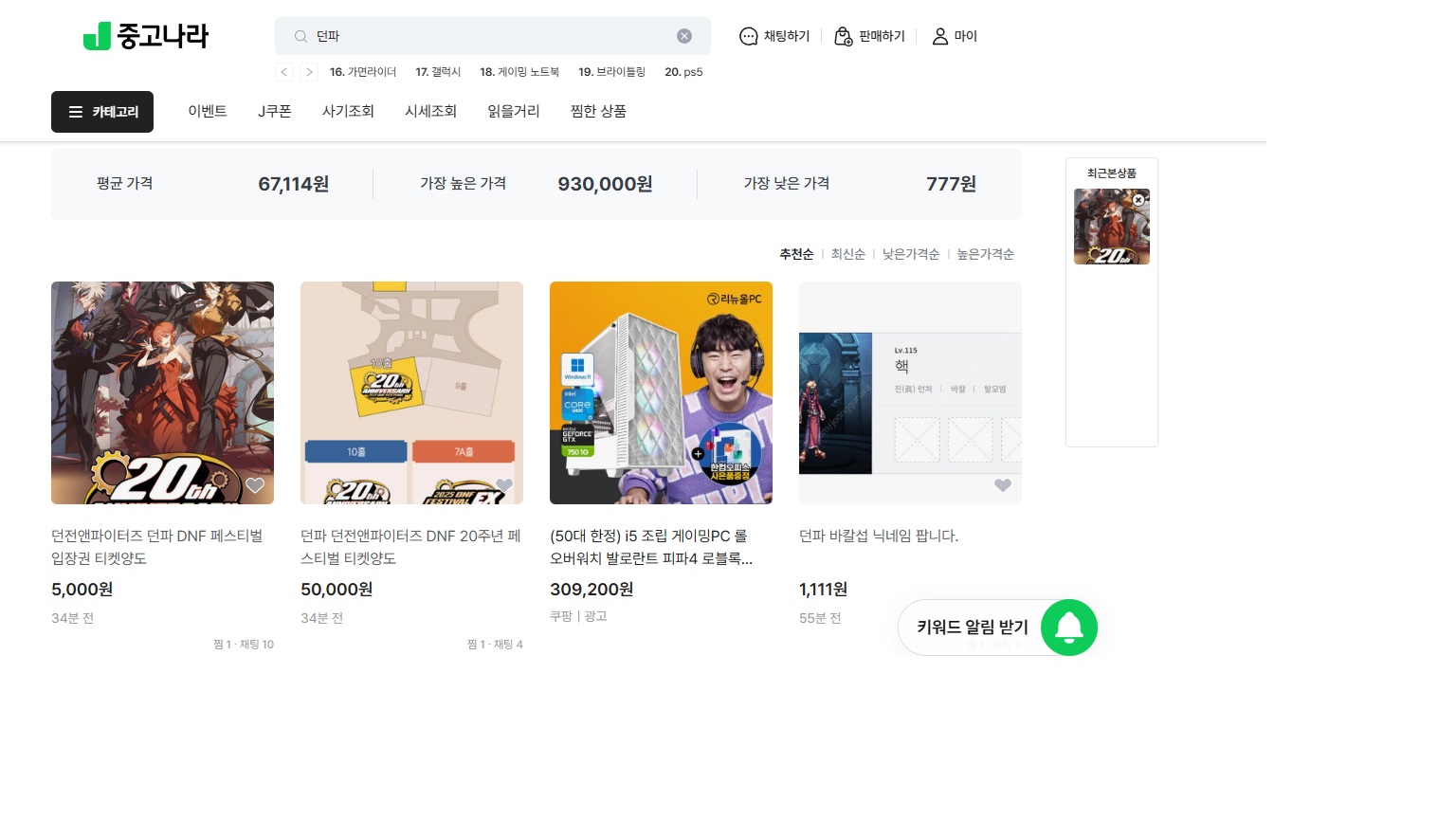 [공통] 던페 가지도 않으면서 벌써 중고나라에 티켓5만원에 판매하고있군 (1)