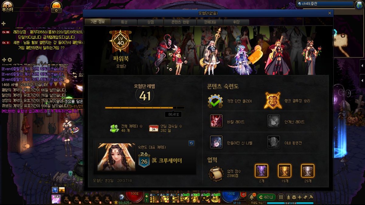 2. 280일 동안 만들어진 신 나벨 레이드 (주간) 무지의 악 명성 47684 보내기 위해 각 클래스 하나 하나 진입 스팩업 하는데 시간 투자 점 했어요