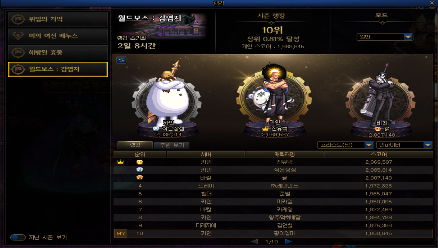 공지 [상시이벤트] 12월 묻고답하기 이벤트 안내 (11월 답변왕 발표) (10) 던전앤파이터 2025.12.11 2,343 0 공지 [수상자 발표] [월드보스] 정보/공략 작성 이벤트 수상자 안내 던전앤파이터 2025.12.04 3,107 0 공지 [이벤트] [디레지에] 레이드 정보/공략 작성 이벤트 던전앤파이터 2025.11.26 7,220 0 공지 2025 던파페스티벌 20th Anniversary 발표 요약 던전앤파이터 2025.11.22 121,963 22 공지 장비 / 플레이 / 뉴비 정보 모음 (219) 던전앤파이터 2025.04.24 999,999+ 115 공지 던전 공략 모음 (디레지에 레이드) (176) 던전앤파이터 2025.11.26 999,999+ 138 공지 전직 별 가이드 모음 (25/11/24 갱신) (745) 던전앤파이터 2025.11.24 999,999+ 390 수다 [퇴마사] 녹스 구경 좀 하고싶어요 (21) 동현파빌 2025.11.11 661 0 수다 [공통] 디레지에 레이드에서 메딕 (2) 고진감래 2025.11.11 641 0 수다 [공통] 보라색 멍멍이까지 약 3주... (5) 치즈퐁듀치킨 2025.11.11 631 0 팁 [공통] 빙결사 월드보스 1위 194만점 빌드영상 (3) 氷の刃 2025.11.11 1,873 5 수다 [공통] 내 스펙으론 요정도가 한곈가 (3) 엘쁜나이트 2025.11.11 710 0 질문 [공통] 여캐중에... (17) 《약과》 2025.11.11 669 0 수다 [공통] 딜러분 구함 (1) 공헌 2025.11.11 461 2 수다 [공통] 얼마나 돌아야 자태초 먹나여... (14) 검호장일소 2025.11.11 842 0 질문 [공통] 11/23 일욜던린이랑 대전에서 던페 같이 가실분 (4) 같이흙먹자 2025.11.11 544 1 수다 [공통] 던페 행사 다음달 이나 내년에 꼭 갑시다. 고정우주 2025.11.11 525 0 질문 [남런처] 남런은 세트 뭐가좋을까요..? (5) 카시안 2025.11.11 779 0 질문 [공통] 태거시+태초악세 2셋(여우) 됐는데 헬 스탑 하나요? (8) 파이허리띠 2025.11.11 622 0 수다 [공통] 안녕하세양 (12) 시이나마히루 2025.11.11 442 0 수다 [공통] 운은 못 이기나 역시 (1) 새벽_넨 2025.11.11 511 0 수다 [공통] 제발 태초 자무기 주세요 ~ (3) 호박꿀 2025.11.11 488 0 질문 [웨펀마스터] 검신 역작 초월 vs 태거시무기항깡 (5) 초상투영 2025.11.11 717 0 수다 [공통] 한계단 탈퇴!! (7) 무영흑단장 2025.11.11 706 0 수다 [공통] 문패 나오고부턴 (1) 버섯..커? 2025.11.11 665 0 수다 [공통] 월보 향수 날씨 오너들은 대충 쳐서 230만까지 가는걸까?... (4) 氷の刃 2025.11.11 708 0 수다 [공통] 주간던파 쏘쏘해 (4) 슈니렌저 2025.11.11 794 0