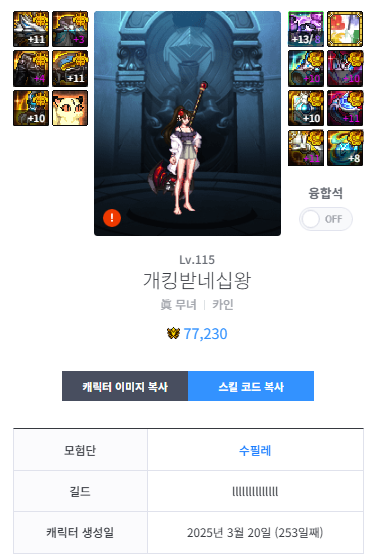 + 추가로 고유 에픽마법석 있으신분은 그거 껴주십시오... 고유에픽마법석 기준으로 스증해방 + 3%여서 손해는없고 오히려 더 강해집니다 (레전초돌이나 에픽초돌있으면 그거 활용하시면 될거같고, 결정하는건 꼭 12월4일 패치보고 정하시면될거같습니다. )