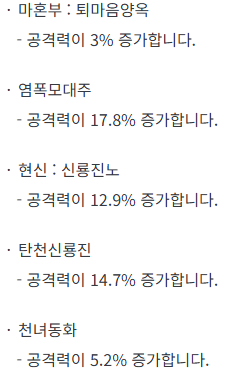 8월 이내황혼전 업데이트 때 추가 밸런스패치