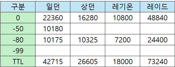 상던/레기온/레이드는 20캐릭에 딱 맞춘것 같고
