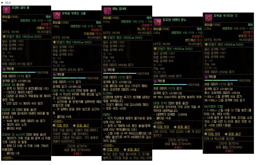 (2) 기존 태거시, 검은 질병의 태거시, 신규 디레지에 무기 비교 / 기준 : 노블레스 오브 레인저