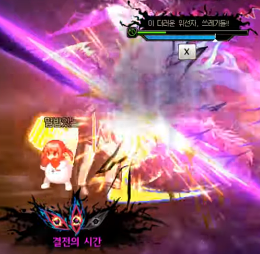 메인패턴 전조 '역겹구나.. 이 거짓된 무리들.. / 영겁토록 소멸시켜주마 / 단 하나도 남김없이'