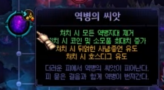 *역병의 씨앗 잡초제거시 코인 및 소모품 최대치 증가(초기화가 아닙니다. 소모품 2씩 증가)