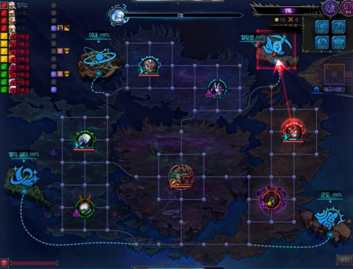 일단 우측상단위를 보시면 이동버튼으로 각 파티의 파티장분들은 나벨레이드처럼 이동할 곳을 눌러 즉시이동이 가능합니다.