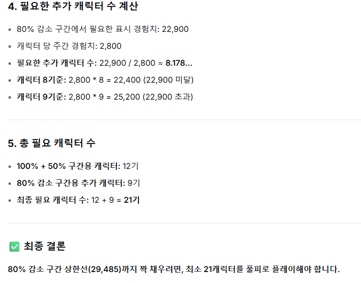 최종 감소 구간 (80%) 꽉 채우려면 : 21캐릭