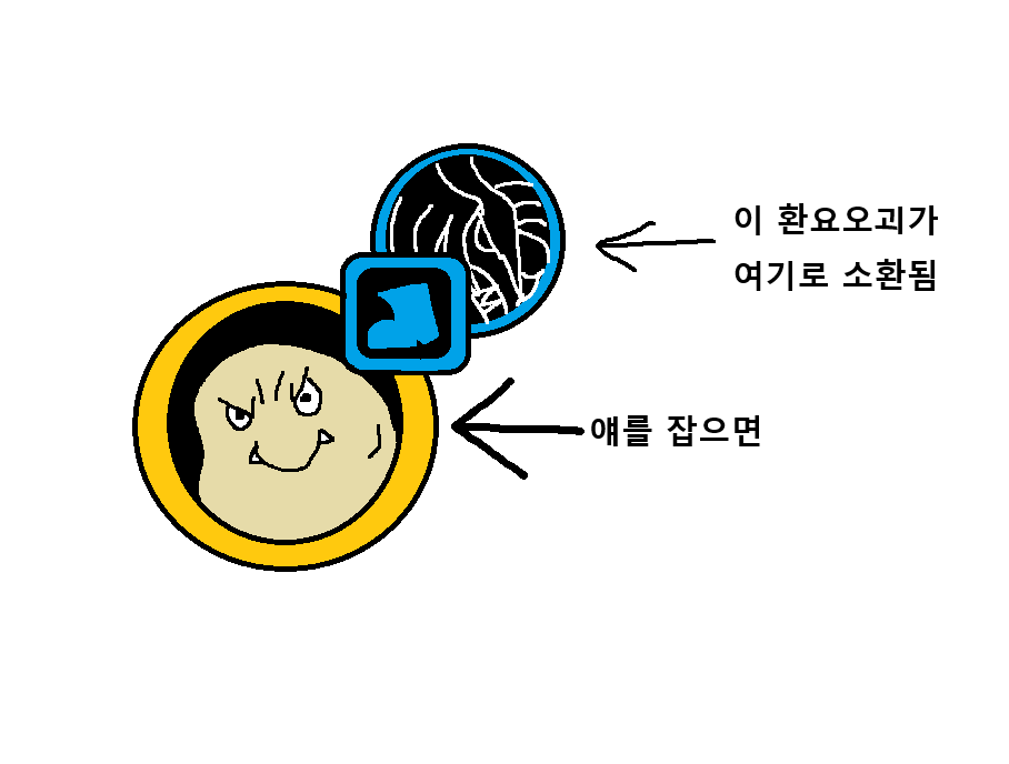 이 뜻은 해당 몬스터를 잡으면 그 자리에 해당 환요오괴가 유도된다는 뜻입니다