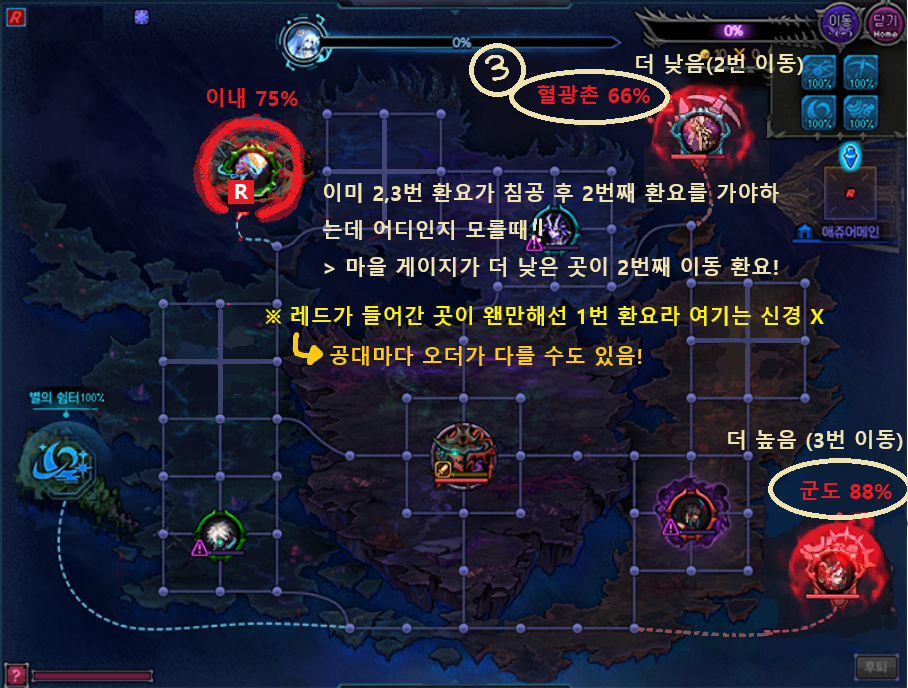 레드: 1번환요 매복 / 옐: 2번 넴드 / 그: 1번 넴드(or 강화넴드)