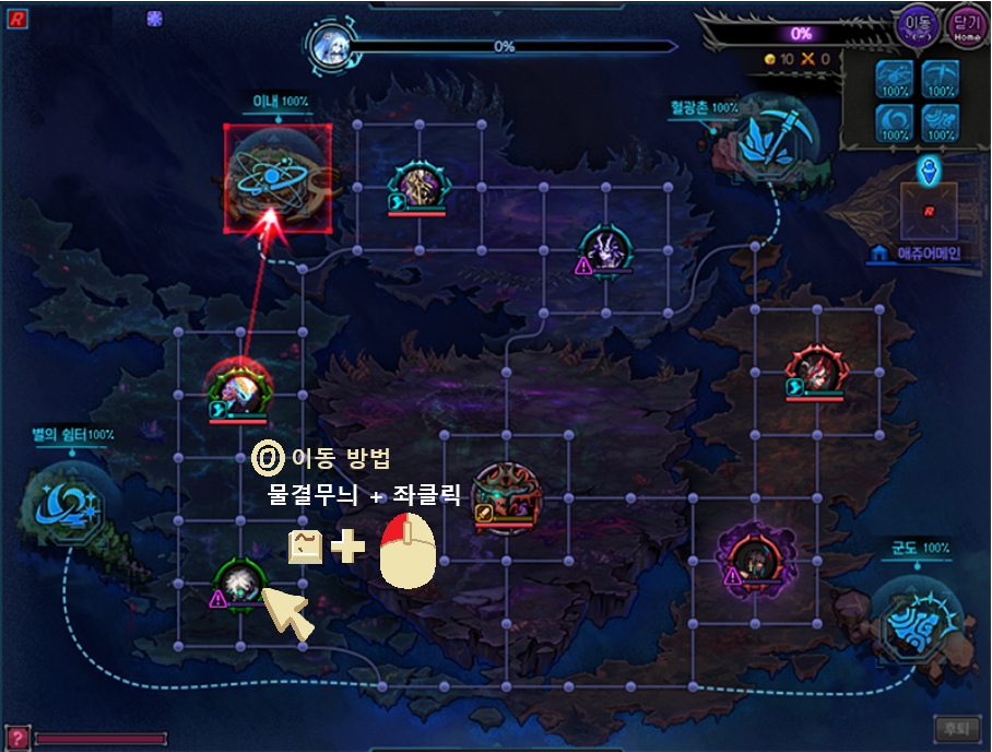 3. 2번이동 환요오괴 : 마우스 커서 올려서 '이동 00초'가 60초 이하