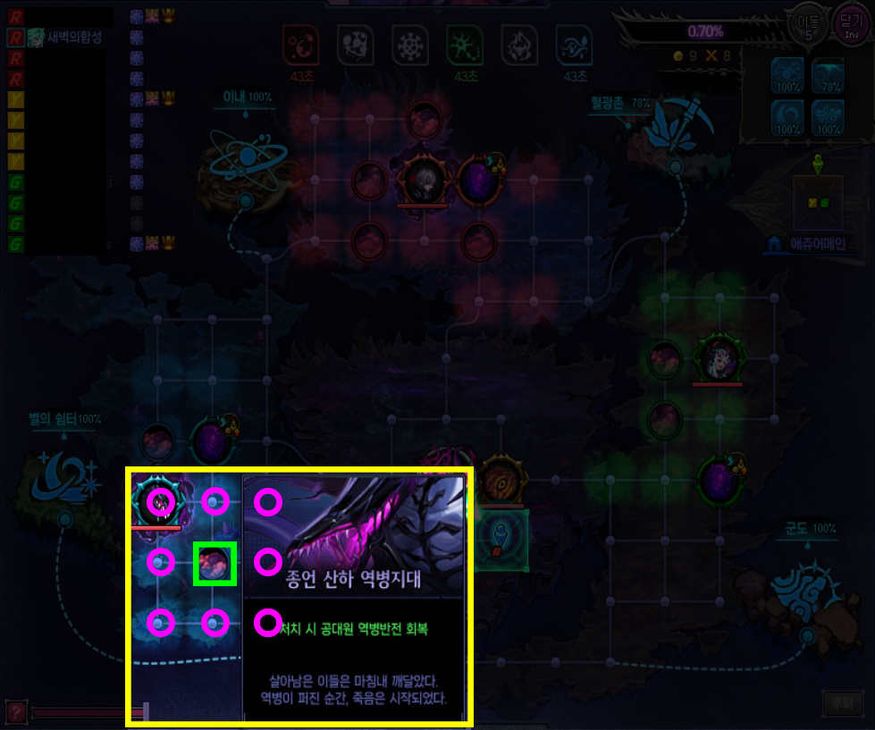 저지방법 : '역병지대' 처치시 3x3 영역 역벽지대 제거 (처치시 역병반전 게이지 10%회복)