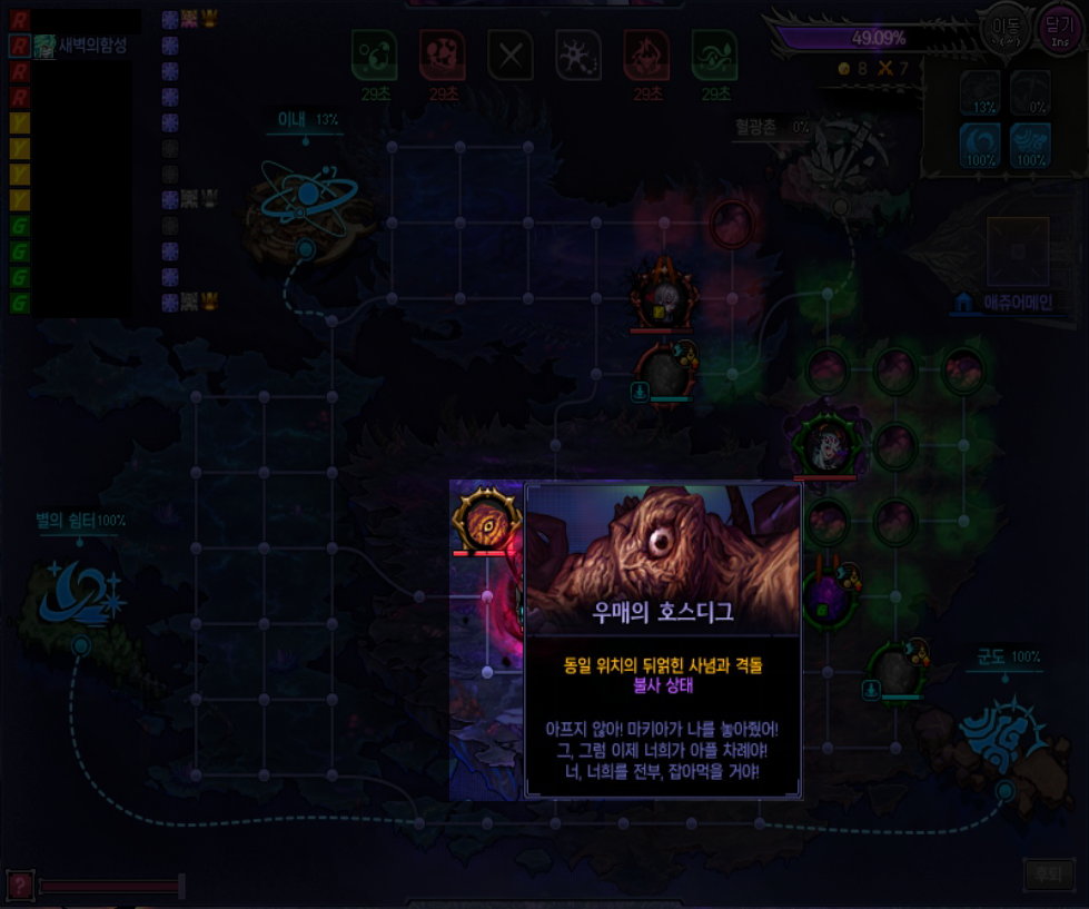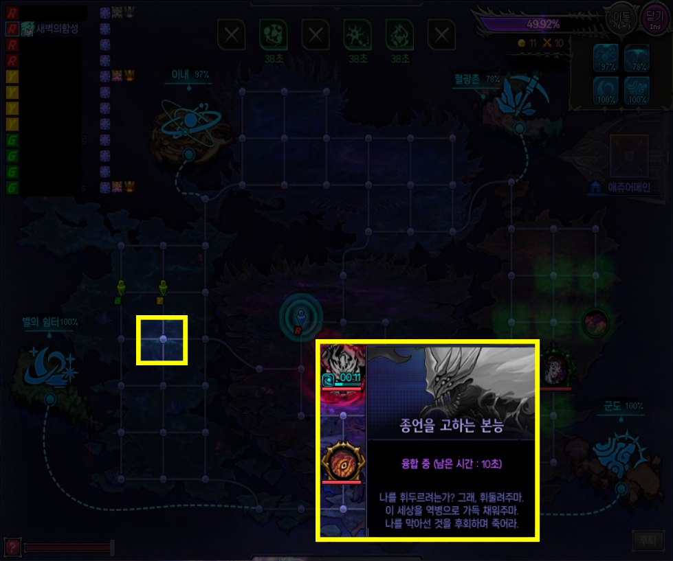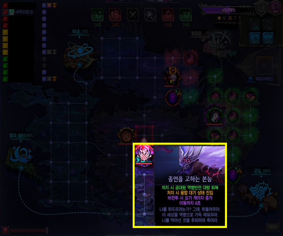 기믹효과 : 모든 역병지대 제거, 뒤얽힌 사념의 받는 피해 증가
