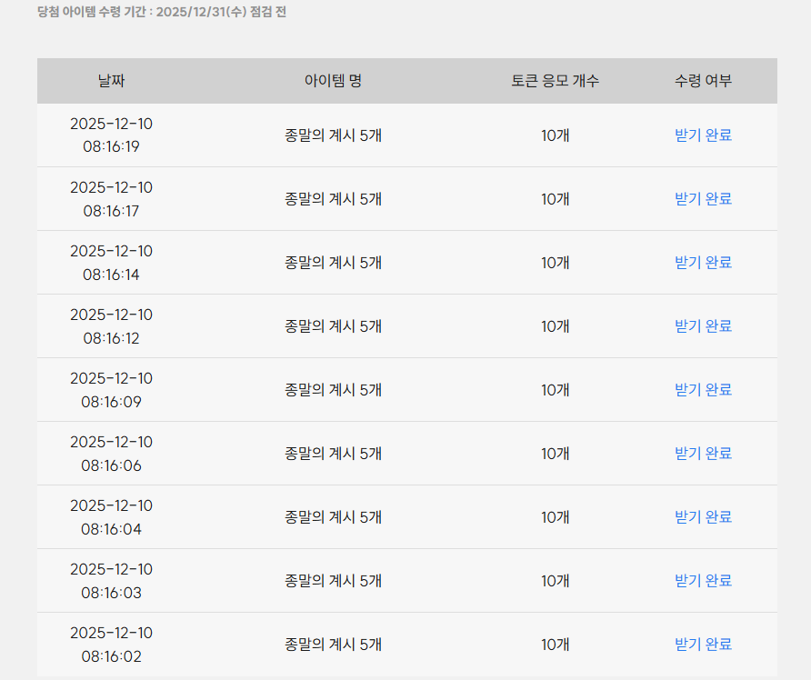 매번 돌아오는 이벤트인데 받을것도 없어서 종말 던파 아이템 받는데 한꺼번에 받기 안되나?