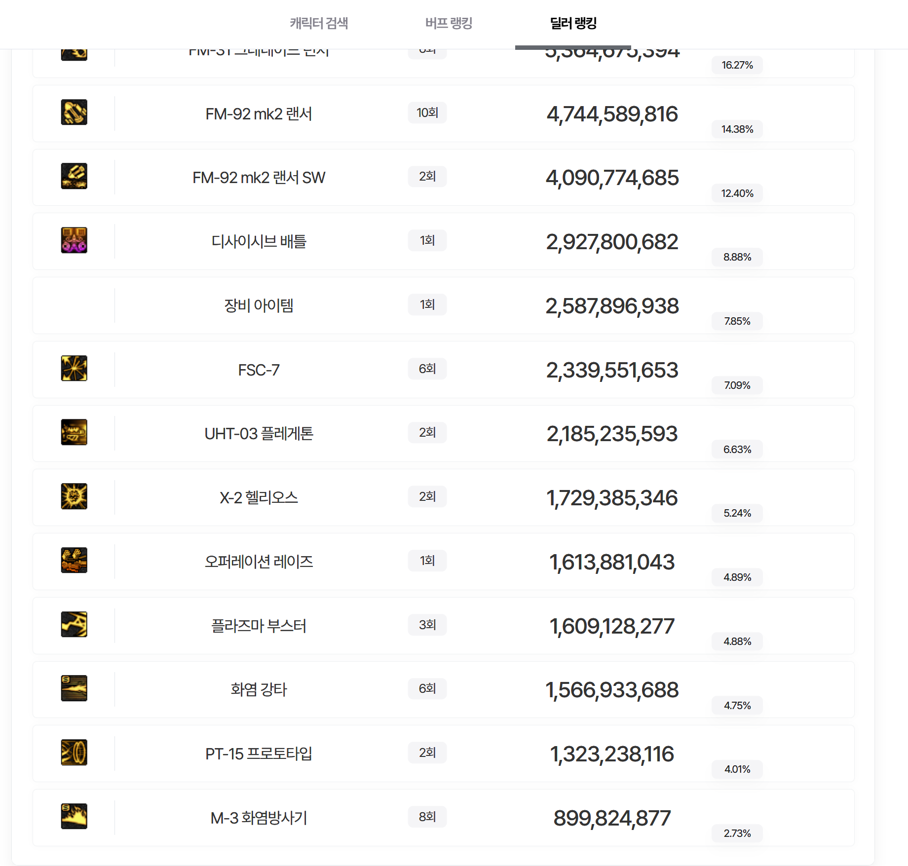 오늘 여런처 무기가챠 성공해서 리턴즈 태거시 먹어가지고 스킬 세팅 변화주려고 랭커들 스킬 참고하는중인데, 화염방사기가 딜표에 포함된 스킬트리가 있더라구요