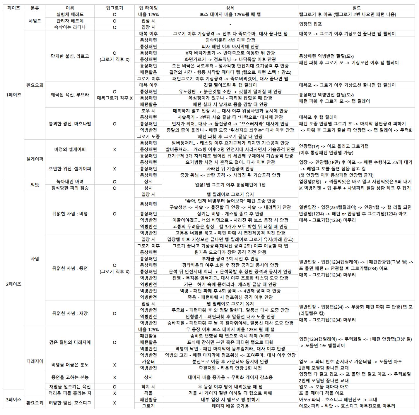 [공통] 디레지에 레이드 탭타이밍 & 빌드 정리표 (12/11 기준 최신) (11)