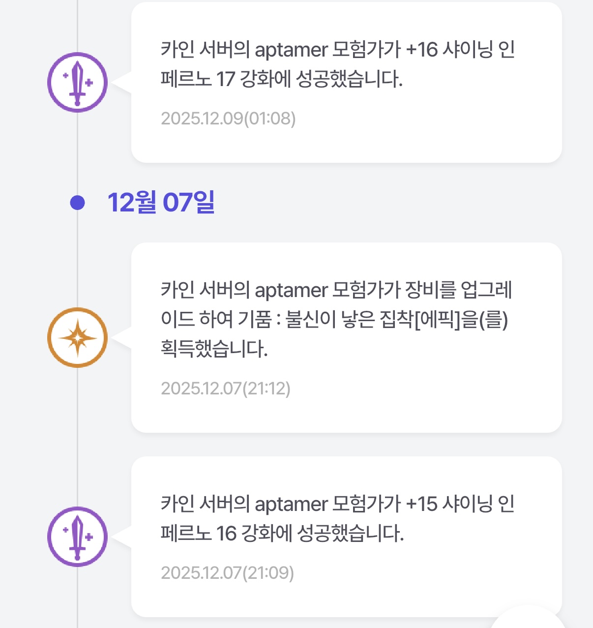 공지 [상시이벤트] 12월 묻고답하기 이벤트 안내 (11월 답변왕 발표) (10) 던전앤파이터 2025.12.11 2,393 0 공지 [수상자 발표] [월드보스] 정보/공략 작성 이벤트 수상자 안내 던전앤파이터 2025.12.04 3,141 0 공지 [이벤트] [디레지에] 레이드 정보/공략 작성 이벤트 던전앤파이터 2025.11.26 7,260 1 공지 2025 던파페스티벌 20th Anniversary 발표 요약 던전앤파이터 2025.11.22 146,307 22 공지 장비 / 플레이 / 뉴비 정보 모음 (219) 던전앤파이터 2025.04.24 999,999+ 115 공지 던전 공략 모음 (디레지에 레이드) (176) 던전앤파이터 2025.11.26 999,999+ 138 공지 전직 별 가이드 모음 (25/11/24 갱신) (745) 던전앤파이터 2025.11.24 999,999+ 391 질문 [미스트리스] 님들 리디머 세렌이랑 칠흑 비교했을때 왜 칠흑이 더 낮나요 (2) 『신캐임』 2025.12.13 326 0 수다 [공통] 박제) 쩔사기꾼이라고 구라치는놈 박제합니다 (2) 히란 2025.12.13 519 2 질문 [사령술사] 사령 무리 vs 페어리 어떤 걸 가야할까요? (7) 본레스베르 2025.12.13 327 0 수다 [공통] ㅋㅋㅋㅋㅋㅋㅋㅋㅋ (11) 엘마키울랭 2025.12.13 385 0 질문 [웨펀마스터] 던린이 스팩업 질문 (3) 일격순삭 2025.12.13 299 0 수다 [공통] 디레지에 레이드 헤딩 공대 클 후기 (2) *디멘션워커 2025.12.13 560 0 수다 [공통] 태초의 힘은 (2) 타마모☆캣 2025.12.13 409 0 질문 [공통] 무한화서 에핏 항아리 대해서? (4) 에스파니아 2025.12.13 427 0 수다 [공통] 토끼가족에서 새로운 길드원분 모집하고 있습니다 이것저것 같이 하고 지낼 토냥이 구해염 많은 관심 ㅎㅎ 교양 2025.12.13 214 0 수다 [공통] 묵혈마 삼니다 (5) 김햄중 2025.12.13 240 0 질문 [공통] 퍼섭 적용한 밸패 본섭에도 적용된건가요? (3) 관포지교 2025.12.13 342 0 수다 [공통] 안녕하세요~ (16) x수지x 2025.12.13 269 0 수다 [공통] 디레 왤케 돌기가 싫냐... (3) 검귀님! 2025.12.13 592 1 질문 [공통] 이거 근데 명성 5만대면 7만되는데 얼마나 걸려요?? (7) 버프쿨이요 2025.12.13 518 0 수다 [아수라] 나벨 레이드 입장 관련 질문 있어요. (2) -*청명*- 2025.12.13 292 0 수다 [공통] 디레 2주차부터 업둥 있네 (4) 캔슬하슈 2025.12.13 674 0 수다 [엘레멘탈 마스터] 대초 세트 포인트 질문 드려요. (3) -*봄*- 2025.12.13 274 0 수다 [공통] 안톤 이후로 처음 쩔받는중인데 (5) *디멘션워커 2025.12.13 580 0 질문 [아수라] 아수라 세트 고민 (3) 도라이모 2025.12.13 357 0 질문 [남스핏파이어] 태초의 별 - 머스켓 무기 질문 (3) Myth^ 2025.12.13 282 0