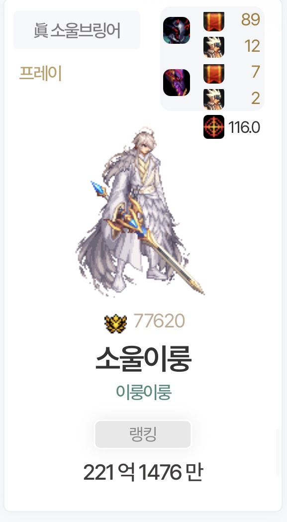 태거시랑 태초선택권 몰아주면 200억 넘겨서 디레지에 갈 수 있을 거 같습니다 근데 다른 캐릭에 비해 내실이 살짝? 부족한 느낌