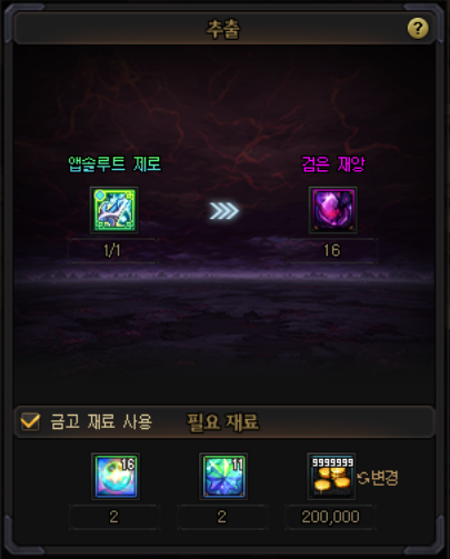 - 확정인 만큼 재화가 압도적으로 많이 요구되기 때문에 검신의 멸룡검 발뭉같이 극단적 의존도를 요구하는 경우에만 사용할 것을 권장합니다.