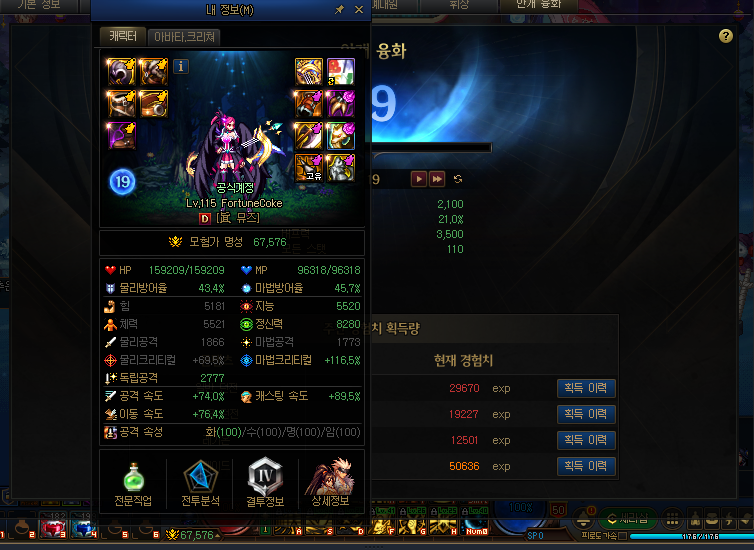 1월 부터 뮤즈 7캐릭 키워서 전부 안개신 벞교 보내고 있었는데, 지금은 10캐릭 됨, 시크릿 콘서트가 한 캐릭 밖에 없는데 나벨 벞교를 뮤즈10세트 보내고 융화 19렙을 찍었다?