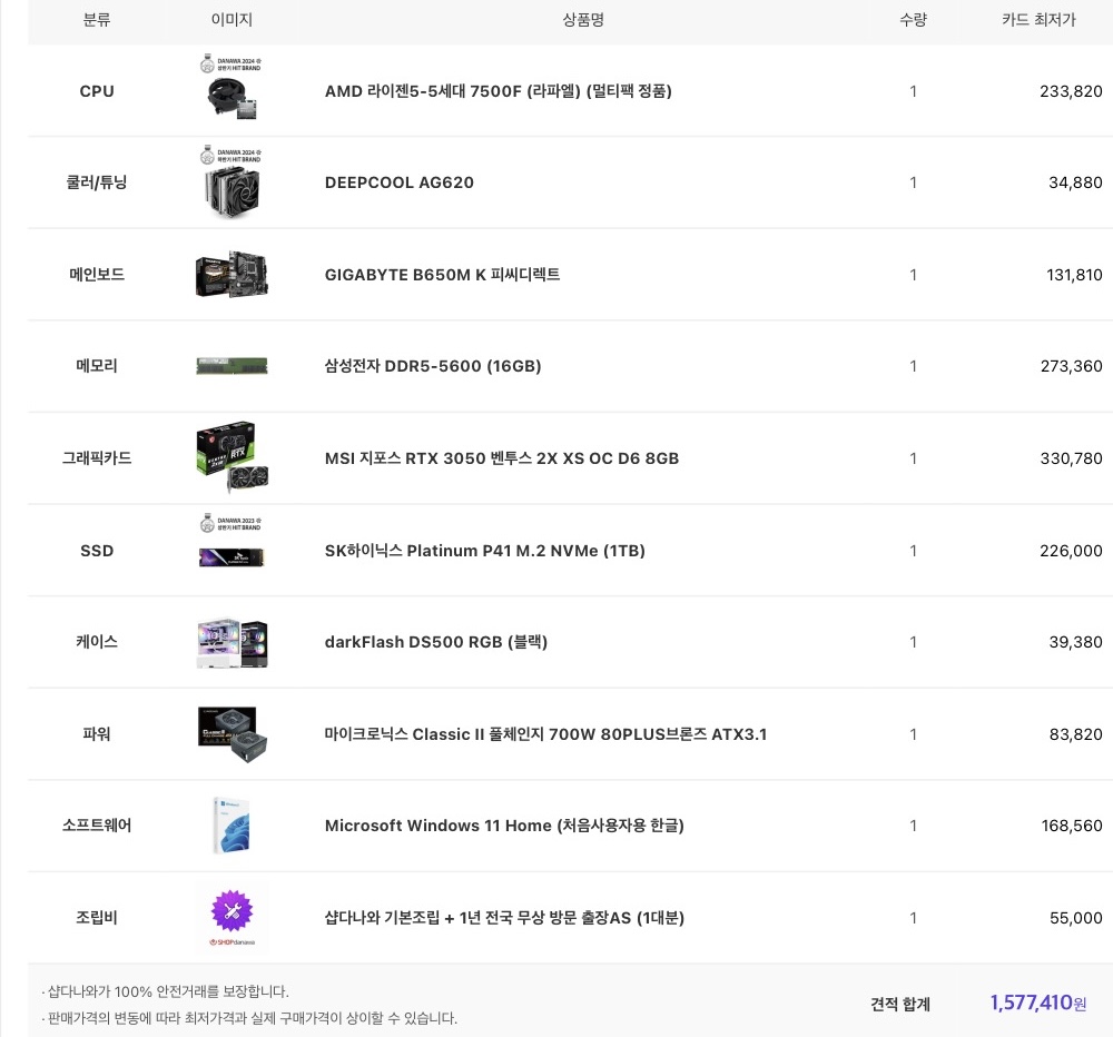 좀 더 가성비 견적으로 제품명 추천해주시면 감사하겠습니다.
