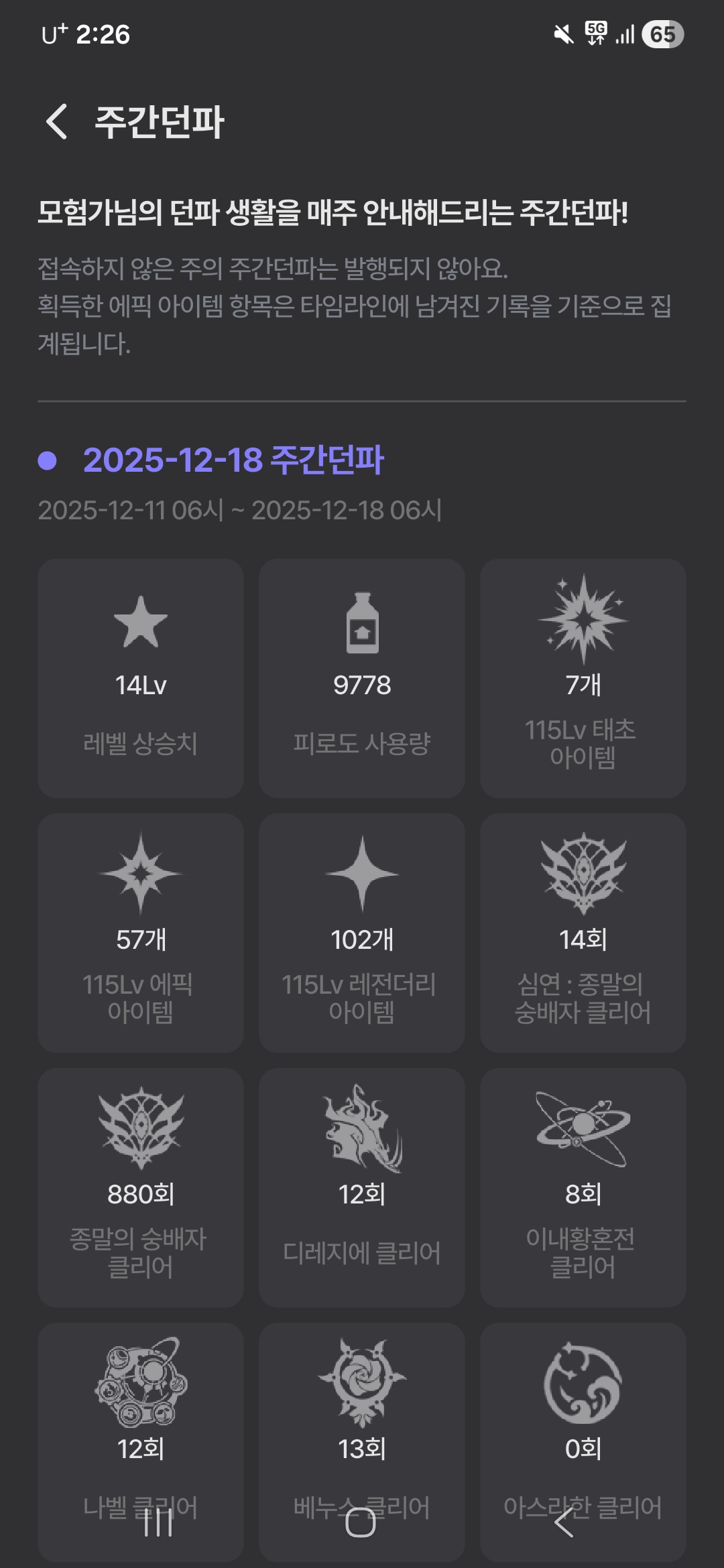 공지 [상시이벤트] 12월 묻고답하기 이벤트 안내 (11월 답변왕 발표) (10) 던전앤파이터 2025.12.11 2,304 0 공지 [수상자 발표] [월드보스] 정보/공략 작성 이벤트 수상자 안내 던전앤파이터 2025.12.04 3,066 0 공지 [이벤트] [디레지에] 레이드 정보/공략 작성 이벤트 던전앤파이터 2025.11.26 7,196 0 공지 2025 던파페스티벌 20th Anniversary 발표 요약 던전앤파이터 2025.11.22 103,335 22 공지 장비 / 플레이 / 뉴비 정보 모음 (219) 던전앤파이터 2025.04.24 999,999+ 115 공지 던전 공략 모음 (디레지에 레이드) (176) 던전앤파이터 2025.11.26 999,999+ 138 공지 전직 별 가이드 모음 (25/11/24 갱신) (745) 던전앤파이터 2025.11.24 999,999+ 390 질문 [공통] 클스 이벤할까요?? (4) 은성 03:35 78 0 팁 [소드마스터] 중천 '도' 소드마스터 공략과 캔슬 가이드! (움짤다수) (2025.12.16 갱신) (141) 유키노 03:20 98,971 40 질문 [공통] 디레 3페 질문 (3) Vernuses 03:19 78 0 수다 [공통] 바니걸 페러메딕 컷신 판매하시는분 (2) DONZULAE 03:04 76 0 수다 [공통] 상던 패치전 치지직 빛동네의 디레지에 통제 (20) 큼짱비질 02:56 983 2 질문 [공통] 13강화권을 누굴 줄까... (3) 준건 02:54 88 0 수다 [공통] 20주년 굿즈 부들부들 나이트 타올 이랑 아크릴액자 필요한사람!.1 (17) 十뮤즈十 02:54 764 0 수다 [공통] 왜 하필이면 20주년 굿즈 코인 썩어넘쳐날껄 생각못하고 계시 5개짜리로 다들 그래 고생시키는지 모르겠다. 백아카리루시 02:45 95 0 수다 [공통] 헬 왜감? (1) 무영흑단장 02:27 159 0 질문 [공통] 뉴비 나벨 레이드상점에서 어떤거 구매해야되나요? (4) 쵸얌키메라 02:02 147 0 질문 [공통] 한 캐릭 인벤에 골드 5억이상 받는 방법이 뭔가요??. 숙련도가 올라야 하나요? (3) 강덕선 01:59 140 0 질문 [공통] 뉴비 초월의의지 어떤거 구매해야되나요? (5) 쵸얌키메라 01:17 201 0 질문 [공통] 거래정지사유? (8) 3.3 01:15 251 1 수다 [공통] 던페복귀자 이내 헤딩 클이다 (3) Schusswaffe 01:07 183 0 질문 [공통] 카니발가면 A타입 파시는분 잇으실가요?? 마제스티; 00:57 84 0 수다 [공통] ■생로랑■길드원 모집!_[실시간 문의가능]_디레지에 헤딩 길공운영_대형길드_뉴비,복귀대환영_디레지에ON (10) 콥듀란 00:53 62,696 3 질문 [사령술사] 보통 과실복구 어느정도 걸릴까요 (5) 옆집그래플러 00:50 173 0 수다 [공통] 나벨매칭 한 파티가 튕기면 이렇게 되네요 (1) 로코소녀 00:41 191 0 질문 [드래고니안 랜서] 이번에 헬졸업한 던린이입니다ㅠ 명성 더 어떻게 올리는게 효율적일까요 (5) 헤르돈 00:24 222 0 수다 [공통] [모집] 븜다닥 & 븜다다닥 길드에서 길드원 모집합니다. <개꿀잼 오픈톡 맛보기 공개> (500) 싑고수 00:20 280,218 26