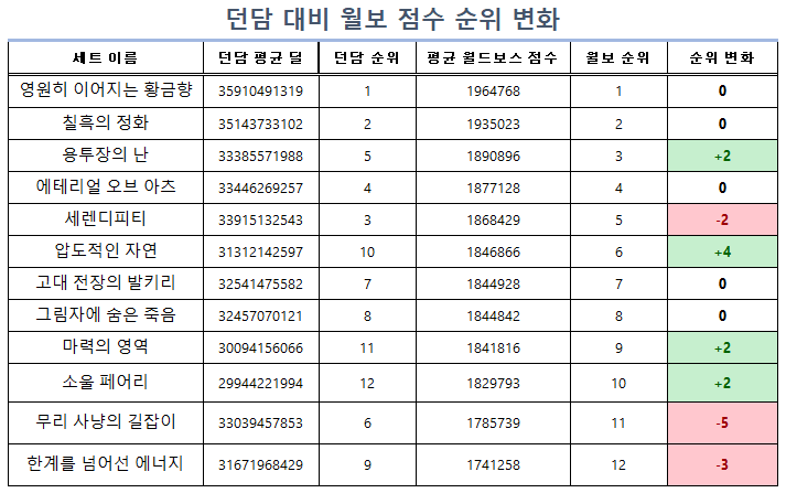 월보랭커 던담 데이터 수집은 목요일이 지난 금요일에 진행하여 수집 시점이 다릅니다..(ㅠㅠ안개융화..하)