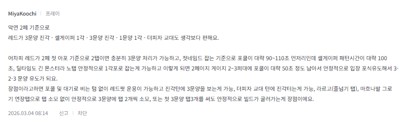 레드 - 첫디레 4탭+1각 - 2융합 비명 디레 진각 - 더피자