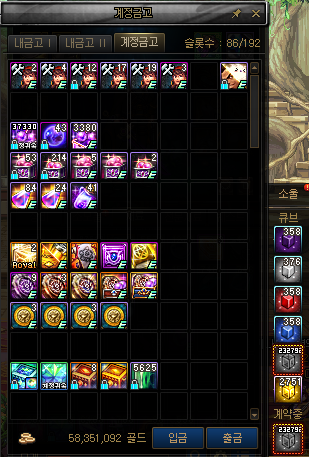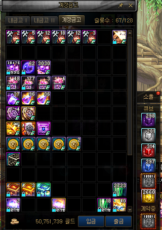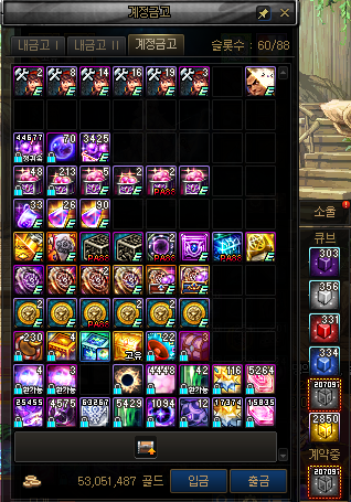 여기서!!!! 초반 세팅용으로 가지고 시작했던 6000만 골드와 무큐 6만개를 제외하고