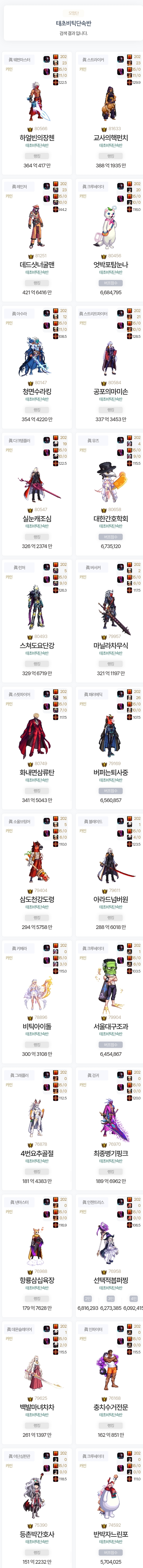 디레 일반 가는애들중에 기본 파밍 졸업한 캐(8에픽+3태초+태거시 무기)가 9캐고 나머지 애들은 태초가 1개 또는 2개씩 비는 상태임.