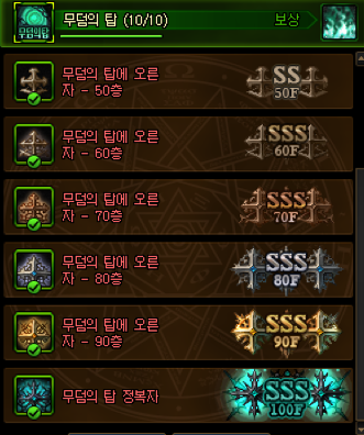 - 무덤의 탑 (100층 등반 보상)