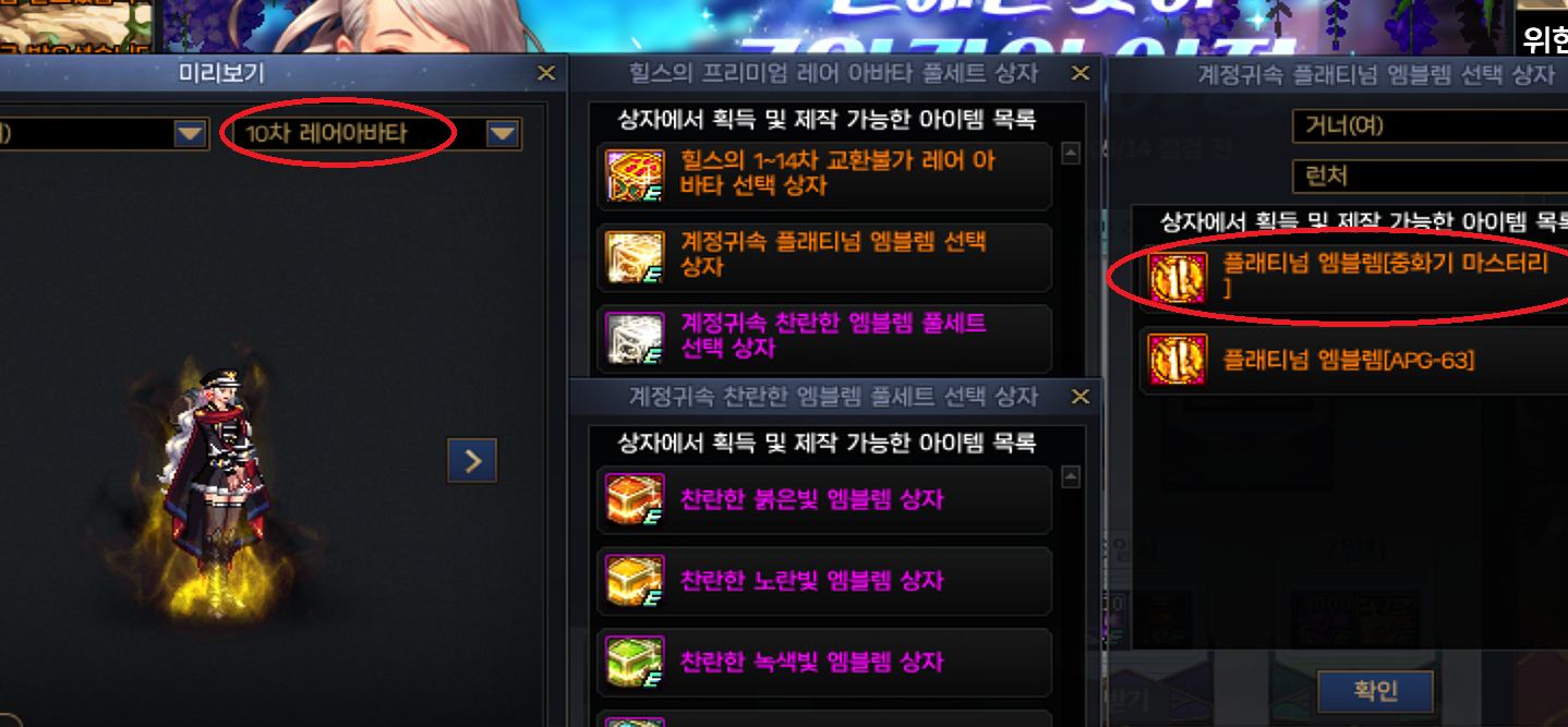(4) 힐스의 레어아바타 세트를 줄 생각이 있다면? : 아바타 차수는 취향껏, 플래티넘 엠블렘은 무조건 중화기 마스터리