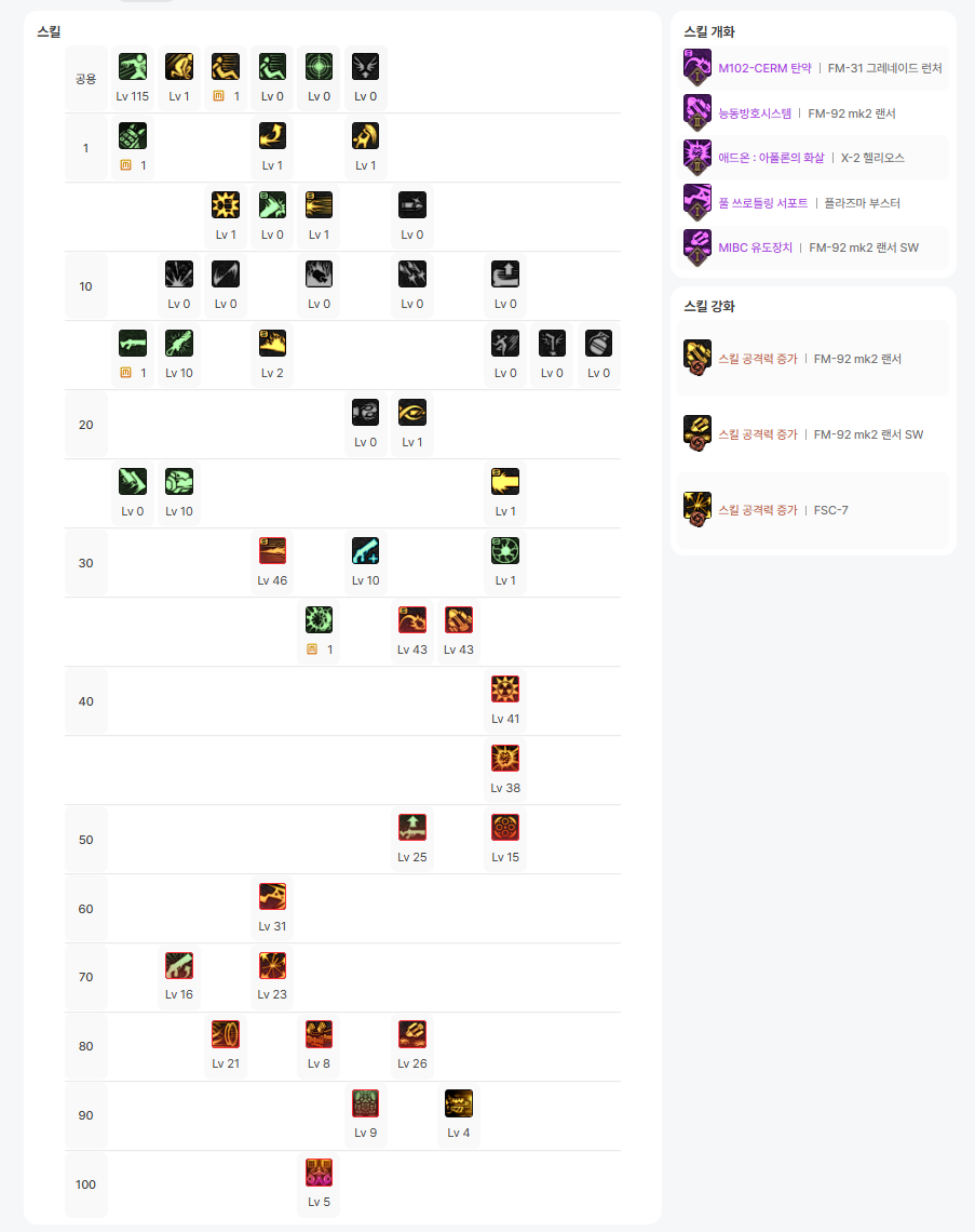 위에서 언급한 바 헬리오스가 제압 기믹 파훼에 활용되야는 점 때문에 주력 딜링으로의 역할을 수행하기가 힘들것으로 판단, 헬리오스 포기 스킬트리를 짜봤습니다. 이는 본섭 상륙 후 장비 파밍 양상 및 개선여부에 따라 바뀌므로 26. 3. 13. 기준으로 합니다.