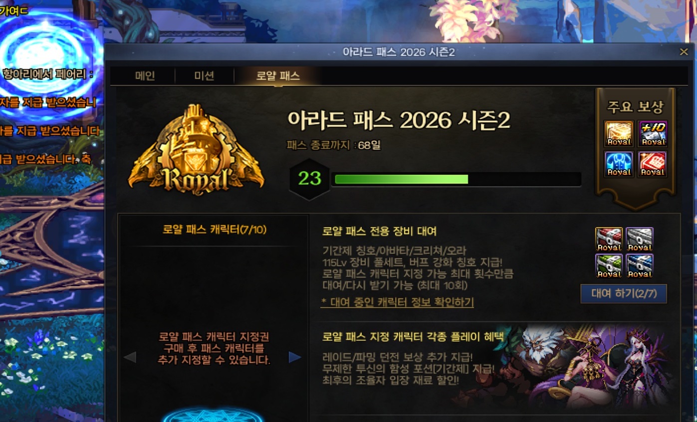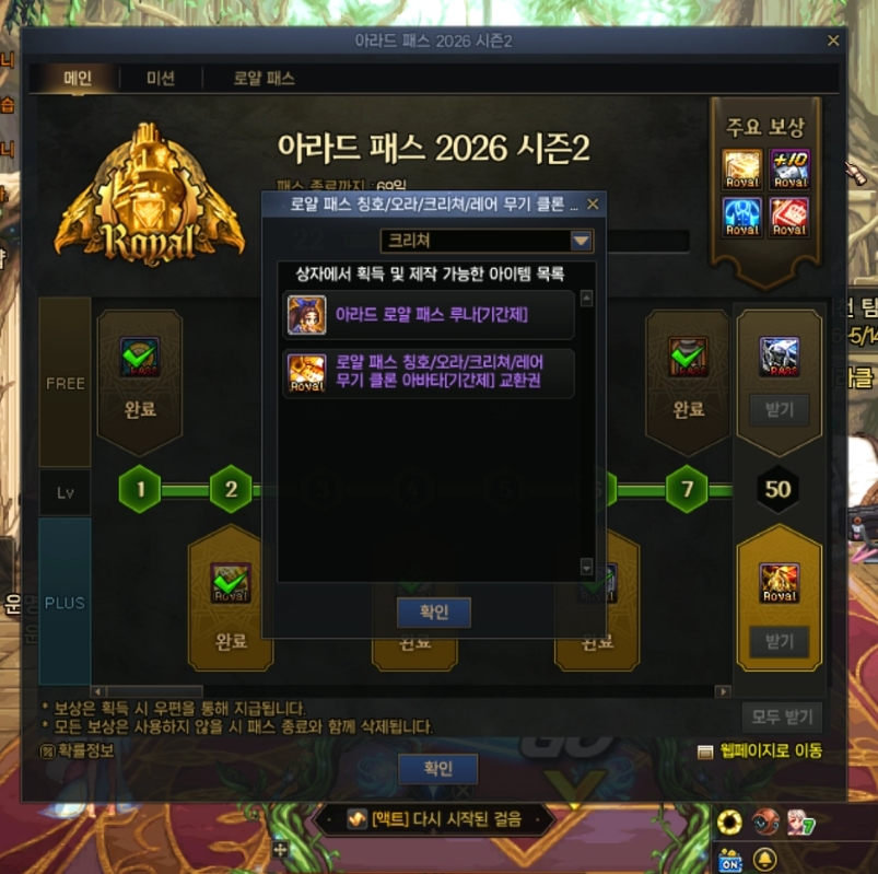 (1) 아라드 로얄 패스 칭호/오라/크리처/레어무기 클론아바타 상자[기간제]를 점핑 딜러에 사용할땐 : 무조건 크리처 선택