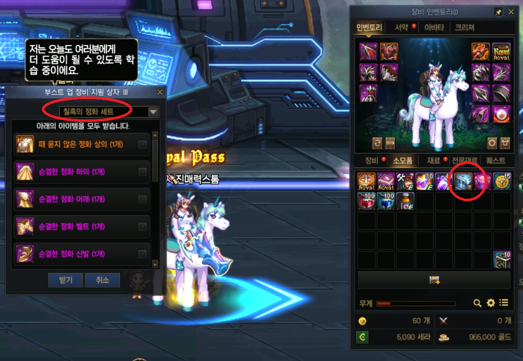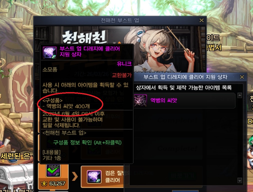 (2) 점핑 퀘스트 진행 후 마지막에 주는 부스트 업 지원 상자 III 사용할땐 : 무조건 칠흑의 정화 선택