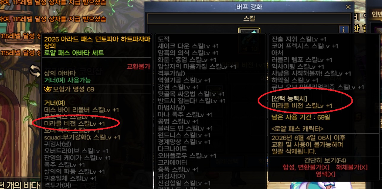 아라드 패스 상의 아바타엔 기본적으로 스위칭 스킬 +1이 포함 되있습니다. 선택 능력치까지 미라클비전 선택시 +2 확보 가능하여 버프 강화 슬롯에 올려두시길 바랍니다.