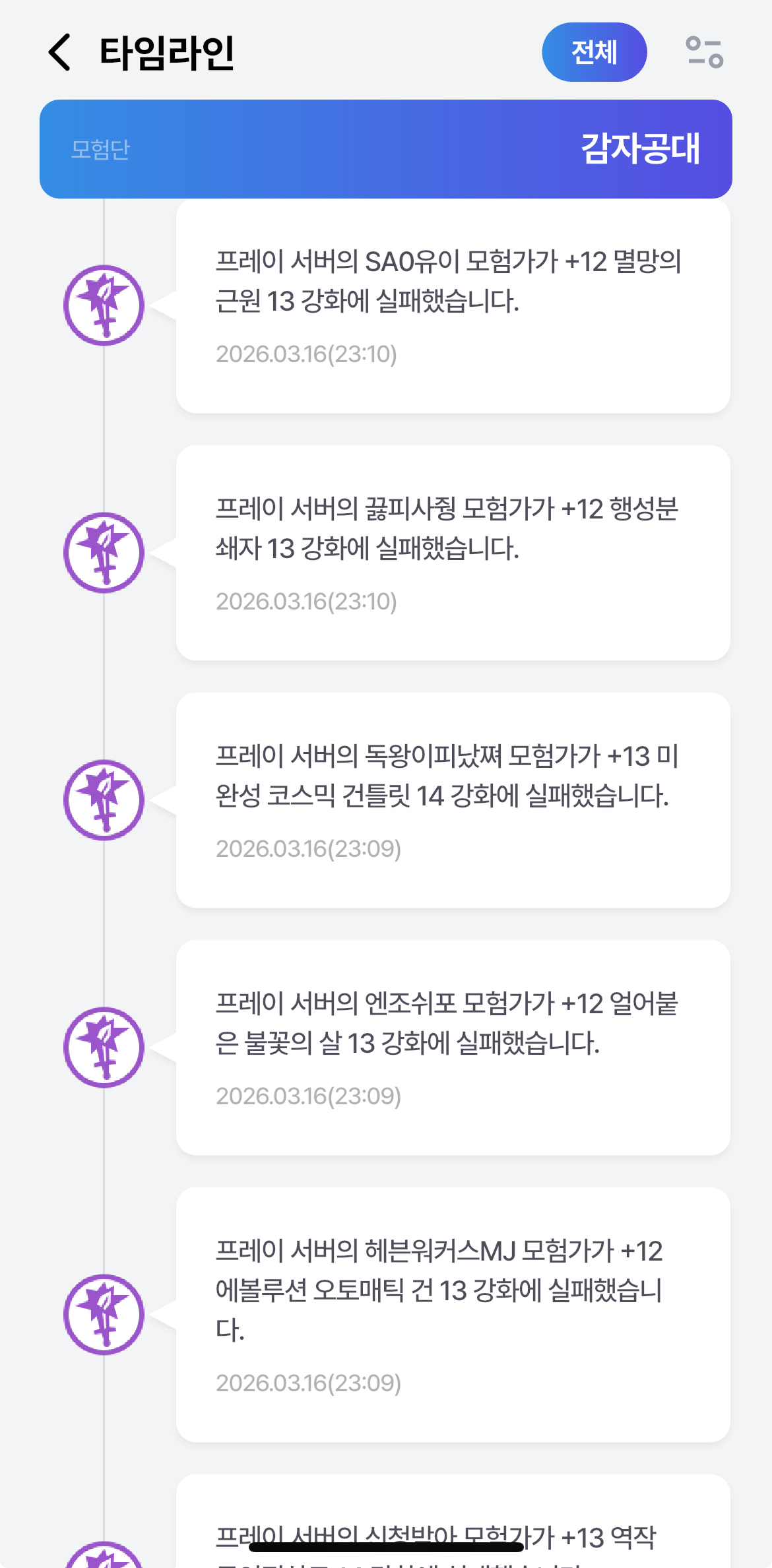 공지 던파로ON : 천해천 발표 요약 던전앤파이터 2026.03.07 15,185 14 공지 [상시이벤트] 3월 묻고답하기 이벤트 안내 (2월 답변왕 발표) 던전앤파이터 2026.03.12 2,164 0 공지 [수상자 발표] 내 전직 가이드 작성/갱신 이벤트 수상자 안내 던전앤파이터 2026.03.05 4,230 5 공지 [이벤트] 천해천 공략 이벤트 (2) 던전앤파이터 2026.03.11 3,278 0 공지 장비 / 플레이 / 뉴비 정보 모음 (223) 던전앤파이터 2025.04.24 999,999+ 120 공지 던전 공략 모음 (디레지에 레이드) (185) 던전앤파이터 2025.11.26 999,999+ 143 공지 전직 별 가이드 모음 (26/03/03 갱신) (764) 던전앤파이터 2026.02.27 999,999+ 400 수다 [공통] 이 기사 보니까 선발대들이 미카엘라, 태초 서약 다 맞추자마자 120만렙 풀지 않을까 싶네요. [Lilith] 01:41 7 0 수다 [공통] 성인 친목 길드! "월하무인" 에서 길드원 구해요! 많이 나간 자리를 찾읍니다 (72) 넨으로앗흥 01:25 154,754 17 수다 [웨펀마스터] 류심버그 고쳐줘ㅓㅓㅓ 오직직진 00:17 144 0 수다 [공통] 분명 4페전에 죽였는데 (2) 엘쁜나이트 00:07 229 0 수다 [공통] 목표 바뀜 (3) 화닐 2026.03.16 272 2 수다 [공통] 크리쳐도 퀵슬롯에 넣게 해달라 업데이트 기원 29일차 ㅁㄴㅇㅊ2ㅊ 2026.03.16 111 0 수다 [소드마스터] 헬도는데 유효? (1) Meteor 2026.03.16 229 0 수다 [공통] 솔직히 돌성장때로 돌아가고싶습니다 (15) 아랑대장 2026.03.16 403 0 수다 [아수라] 퍼섭 각몰수라(오버로드[1각 강화]) 저장용 (2) 한리광 2026.03.16 210 2 수다 [소울브링어] 진짜 중천 전으로 가고싶다. (5) 칭갓수라 2026.03.16 347 0 수다 [공통] 지금 복귀하면 생각없음?ㅋㅋㅋ (4) -엽2- 2026.03.16 362 0 수다 [공통] ★밤나비★ 길드원 모집중//악연길공o 디레길공o 디코 카톡o (9) 창단주 2026.03.16 7,069 4 수다 [공통] 박종민 진지하게 얘랑 비교해야됨 (9) 헤카테 2026.03.16 448 1 수다 [공통] 예전 세나2를 보는것같네 (1) 동그리집사 2026.03.16 240 0 수다 [공통] 무기형상 일괄 200만 팝니다. (132) 강해린 2026.03.16 15,357 0 수다 [공통] "(천슬렁 천슬렁...)거기 지나가는 뉴비 일루와잇!!" ◀ 바른먹거리 ▶ 길드원 모집중! ★=★ (298) Xenevie 2026.03.16 66,582 25 수다 [공통] 이번주는 유난히 템이 안뜨네 헤카테 2026.03.16 233 0 수다 [여넨마스터] 종말 던전 칭갓수라 2026.03.16 150 0 수다 [공통] 각종 무기형상 형상 팝니다 (91) 혈꽃잎 2026.03.16 70,940 6 수다 [공통] 디렉터가 게임을 안하고 지휘하는걸까.. (4) 뀨a뀨 2026.03.16 287 0