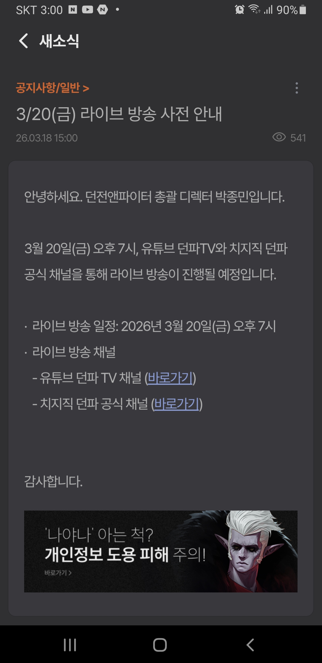 할 말 있으신 분들은 치지직으로 미리 구독하셈