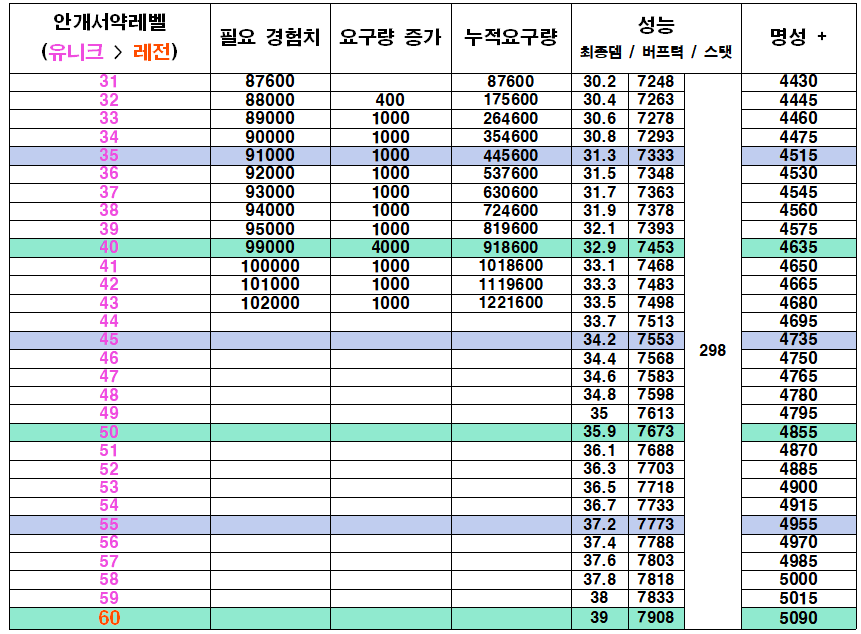 [공통] 안개서약 경험치표 (~43레벨) (5)