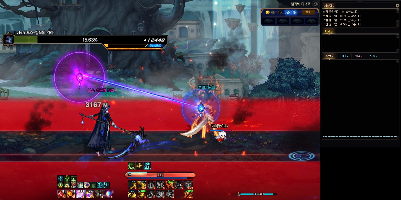 두번째로 나오는 중간보스인 고귀한 빌리스는 굼뱅이들이라고 대사랑함께 패턴시전을합니다 어느정도 패턴익혀서 감보고나서 자동으로 유저한테 장판모양원이나올께 재빨리 빌리스한테 붙어야파훼됩니다.