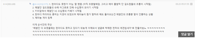 그러나 메쌀단 길드원들한테는 미안하지도 사과하고 싶지도 않습니다.