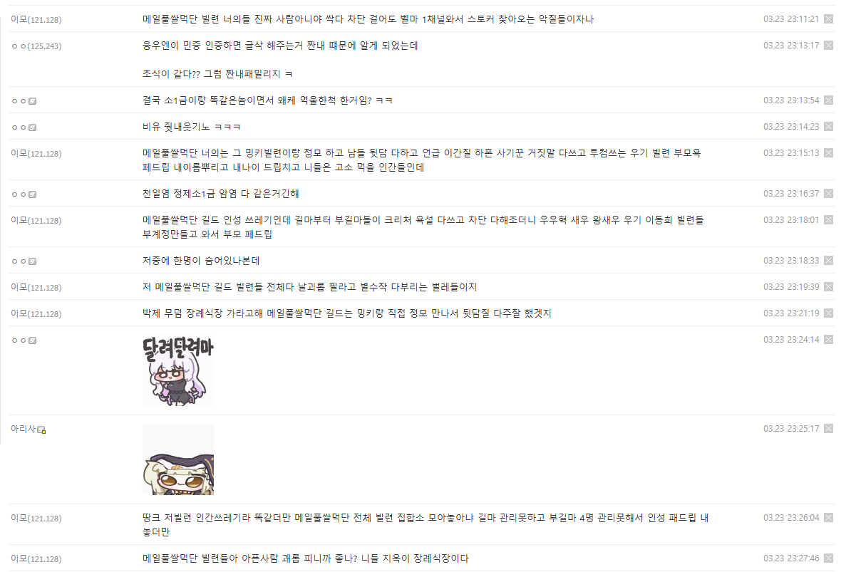 그 이후로도 신상캐기+박제글갱신+패드립 등 여러가지로 절 괴롭혔었죠