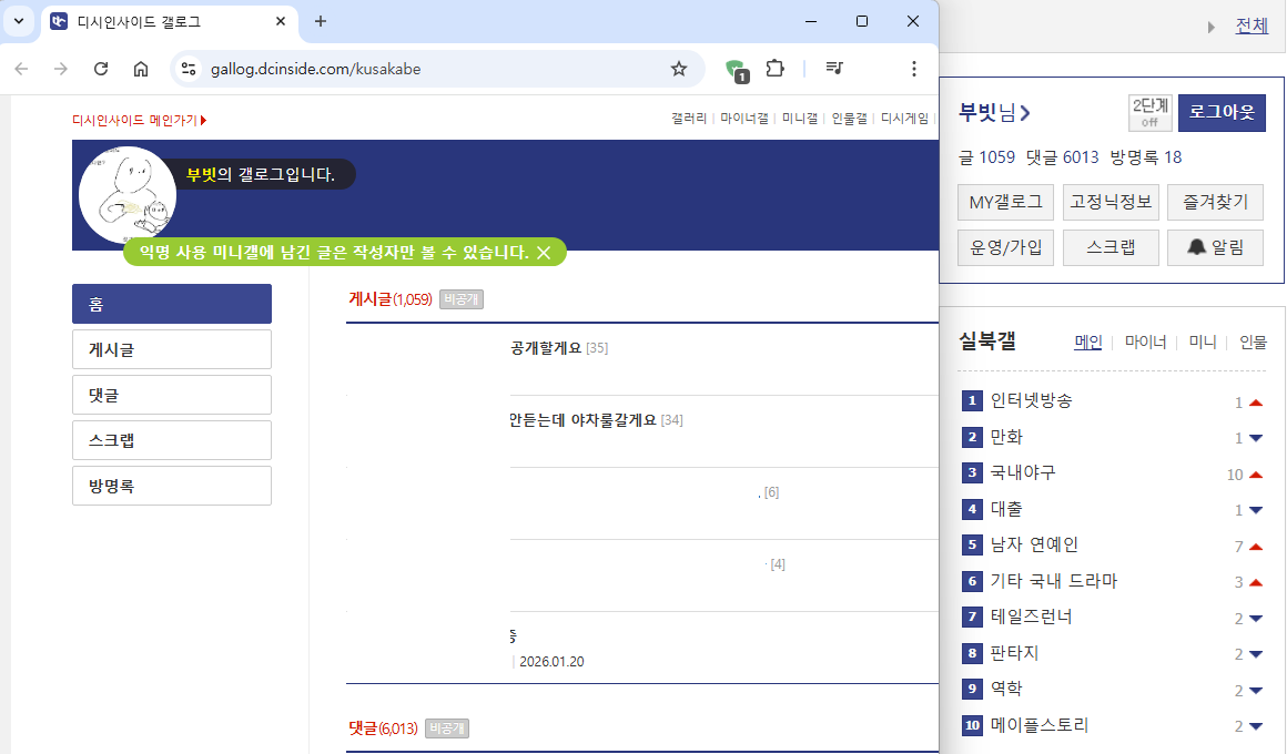 저는 디시인사이드쪽에서 부빗 닉네임으로 활동하고있는 양민욱이란 유저입니다.