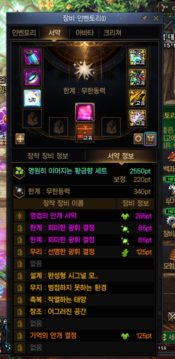 두 사진 모두 공용 서약포인트는 265+125=390.