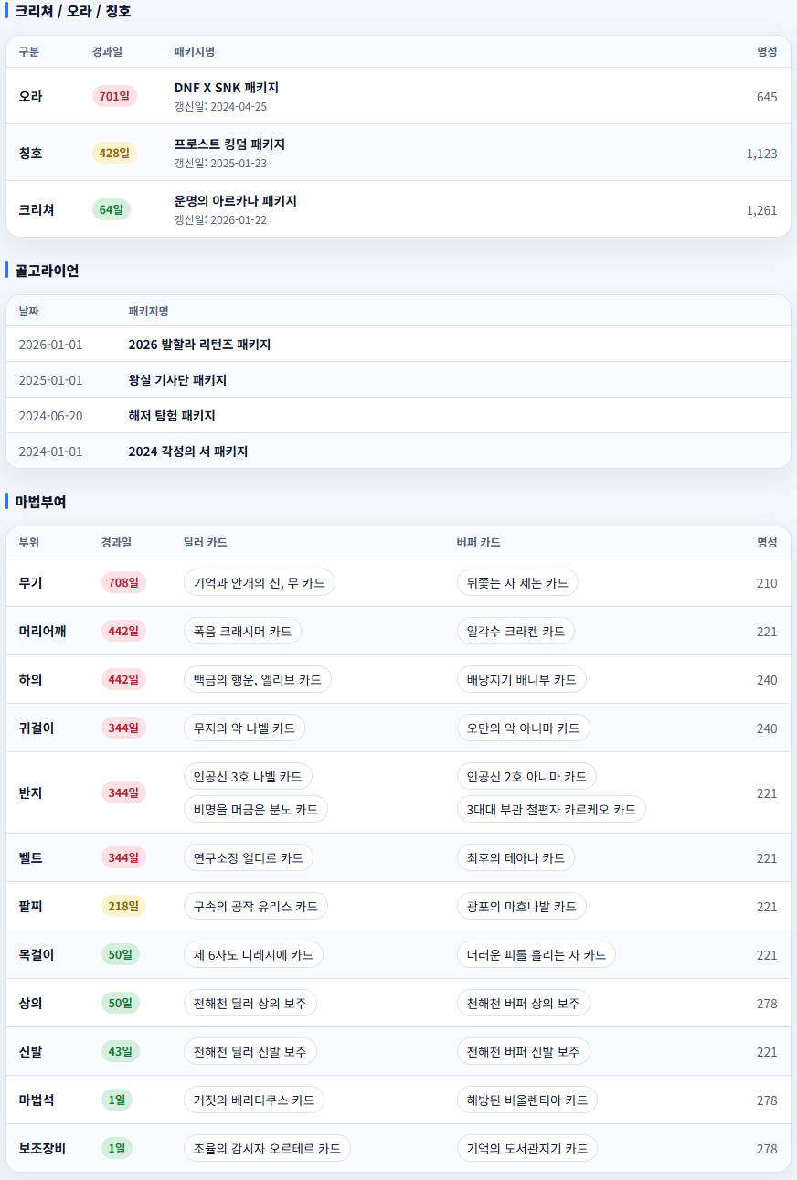 공지 [이벤트] 천해천 공략 이벤트 기간 연장 안내 던전앤파이터 2026.03.26 1,645 0 공지 던파로ON : 천해천 발표 요약 던전앤파이터 2026.03.07 19,832 15 공지 [상시이벤트] 3월 묻고답하기 이벤트 안내 (2월 답변왕 발표) 던전앤파이터 2026.03.12 4,415 0 공지 장비 / 플레이 / 뉴비 정보 모음 (224) 던전앤파이터 2025.04.24 999,999+ 121 공지 던전 공략 모음 (디레지에 레이드) (186) 던전앤파이터 2025.11.26 999,999+ 143 공지 전직 별 가이드 모음 (26/03/03 갱신) (768) 던전앤파이터 2026.02.27 999,999+ 402 수다 [공통] 크리쳐도 퀵슬롯에 넣게 해달라 업데이트 기원 36일차 ㅁㄴㅇㅊ2ㅊ 00:35 18 0 질문 [블레이드] 이번에 휘장 없어졌잖아요 (3) 랜서엽문 00:30 73 0 질문 [퇴마사] 스킬쓰는법 아르벤슈 00:26 33 0 질문 [공통] 새로 시작한 뉴비 융합석 질문 (2) 김아랑 00:25 51 0 질문 [공통] 치지직 드롭스 행운상자 어케 얻어요? (7) 에픽 00:09 107 0 수다 [공통] 치지직 이벤트 이거 노린거임? (1) 빛나는똥기계 00:03 206 0 질문 [공통] 천해천 상던 관련 질문 있습니다.. ㅠ.ㅠ (5) 프로솔플태보 2026.03.27 133 0 수다 [공통] 저는 서약.결정말고 이틀째 태초만 동그리집사 2026.03.27 124 0 수다 [공통] 오디세이 개꿀팁 (4) be키니시티 2026.03.27 156 0 질문 [공통] 점핑 버서커랑 여스파중에 1차레압주고 키우려는데 (3) 넨먀슈터 2026.03.27 142 0 수다 [공통] [설렘주의보] 길드원 모집중입니다~ (17) 흔들여신 2026.03.27 14,003 8 수다 [공통] ■생로랑■길드원 모집!_[★천해천 정보공유&길공]_[디코활발/방송길공]_대형길드_뉴비,복귀대환영 (20) 콥듀란 2026.03.27 73,251 4 수다 [공통] 오디세이 육성좀 해봤는데 (5) 수녀님 2026.03.27 241 0 팁 [공통] 천해천 엑트퀘 이래도 할거야...? ☆윤하느님☆ 2026.03.27 724 0 질문 [트러블 슈터] 복귀하고 나스카 먹었는데 돌려야 하나요? (5) 안써니 2026.03.27 134 0 수다 [공통] 크오칭/마부 갱신 현황 정리 너도나도 2026.03.27 156 1 질문 [공통] 서약헬 질문 (5) ○ㅏ수라 2026.03.27 151 0 수다 [공통] 내일 악연 예상 (2) 나랑한잔할래 2026.03.27 262 0 수다 [공통] 서약태초드신분들!! (5) 엩똍똍 2026.03.27 214 0 수다 [공통] 선호 캐선창 순서 아직도 패치 안했냐 (1) 격겜매니아 2026.03.27 154 0