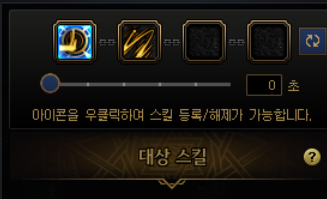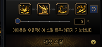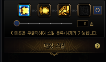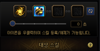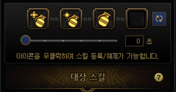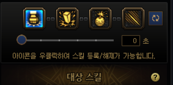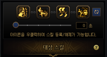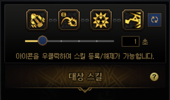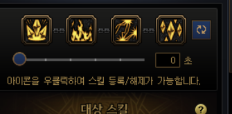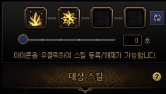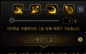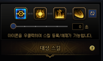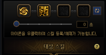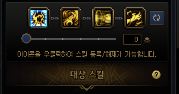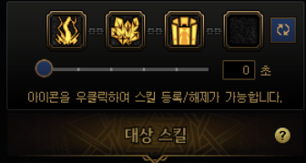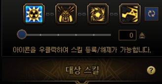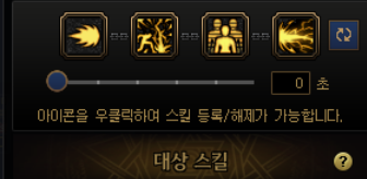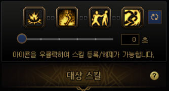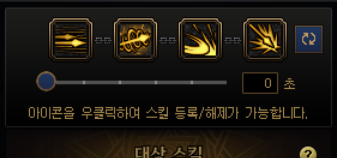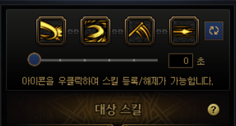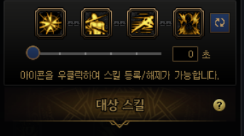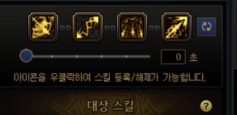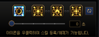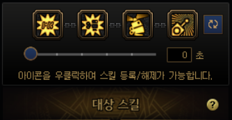 요런 식으로 네개의 스킬을 하나로 묶는데, 처음엔 밑에 숫자가 3초 라고 되어있을겁니다. 0초로 맞춰줍시다.