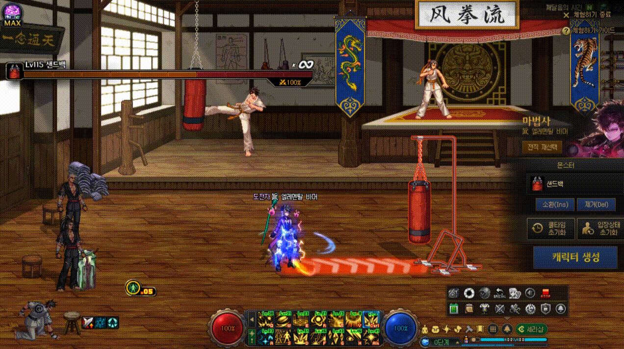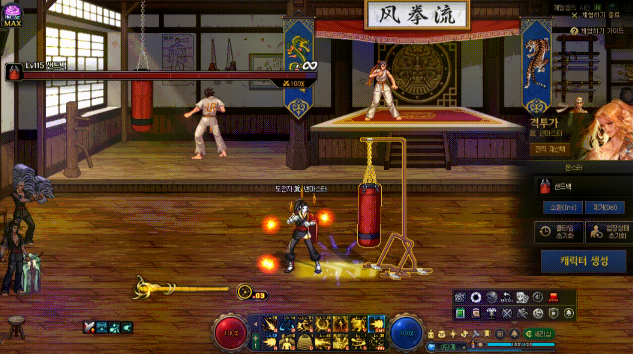 난격 - 백호는 필수로 묶고, 자신이 찍는 4신수 스킬 2개 뒤에 넣어주면 됩니다.