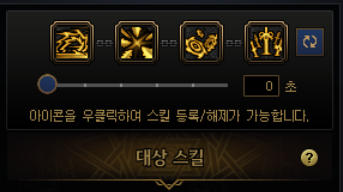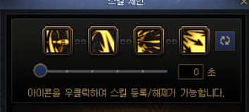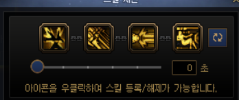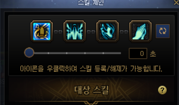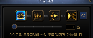 요런 식으로 네개의 스킬을 하나로 묶는데, 처음엔 밑에 숫자가 3초 라고 되어있을겁니다. 0초로 맞춰줍시다.