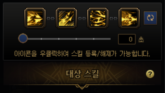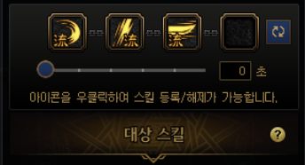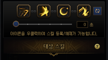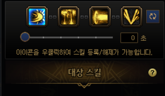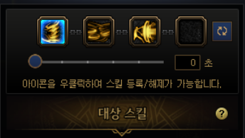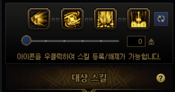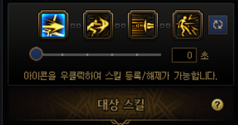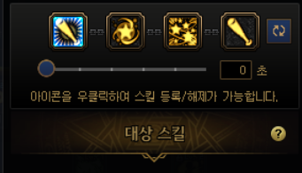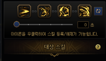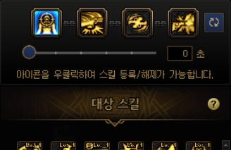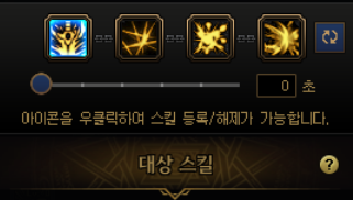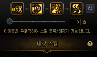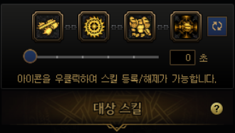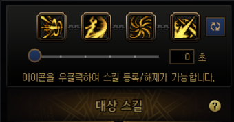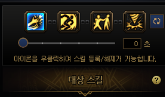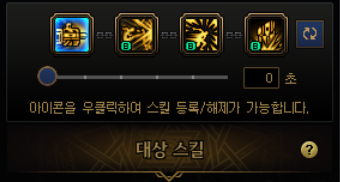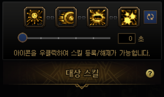 요런 식으로 네개의 스킬을 하나로 묶는데, 처음엔 밑에 숫자가 3초 라고 되어있을겁니다. 0초로 맞춰줍시다.