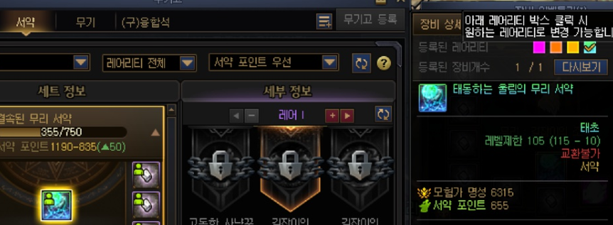태초서약 먹은 저 캐릭은 세리아 칭호도 없을 정도로 안키우던 캐릭입니다....